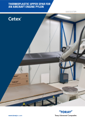 The part, made using TenCate Cetex® TC1320 C/PEKK uni-directional tape, is 6-meters long and 28-millimeters thick. Using a pylon upper spar made of composite instead of steel allows aircraft manufacturers to reduce production costs and weight, and thus save on fuel consumption of aircraft.